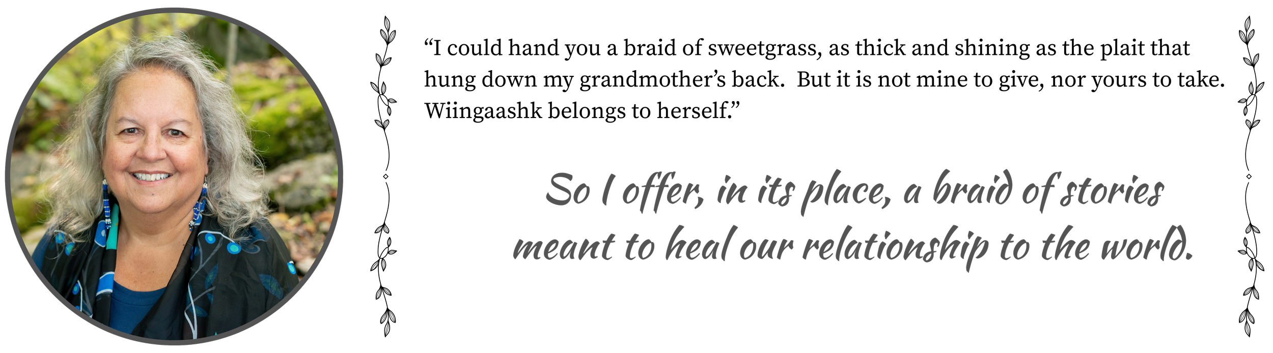 “I give daily thanks for Robin Wall Kimmerer for being a font of endless knowledge, both mental and spiritual.”